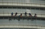 Bueno me parecio que la foto del Blog no tenia mucho sentido si no sabian a la altura que estaban aquellos individuos asi que aqui agrego las dos fotos para que vean porque me impresione tanto.. No se cuanto tiempo ellos estarían colgados limpiando todos esos vidrios: ¡Valientes ¿No?! o tal vez ¿Arriesgados?