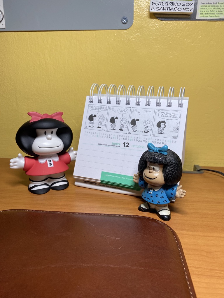 Sobre mi escritorio no falta cada año mi calendario de Mafalda, que me alegra cada día con sus ocurrencias, es lo primero que leo cuando me siento a hacer oración y voy a anotar la fecha.